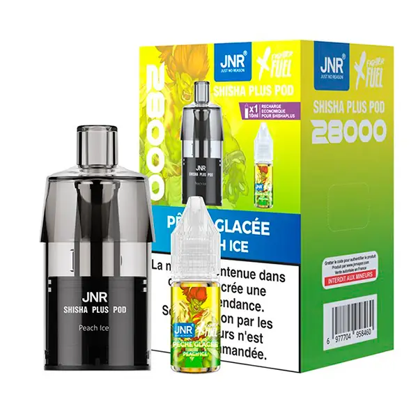 La cartouche Shisha Plus 28K Yellow Ushiro est issue de la collaboration entre JNR et Fighter Fuel. Elle se compose d’une cartouche avec résistance intégrée, accompagnée d’un e-liquide Fighter Fuel aux sels de nicotine dosé à 20 mg/ml, spécialement conçu pour le Pod Shisha Plus 28K.